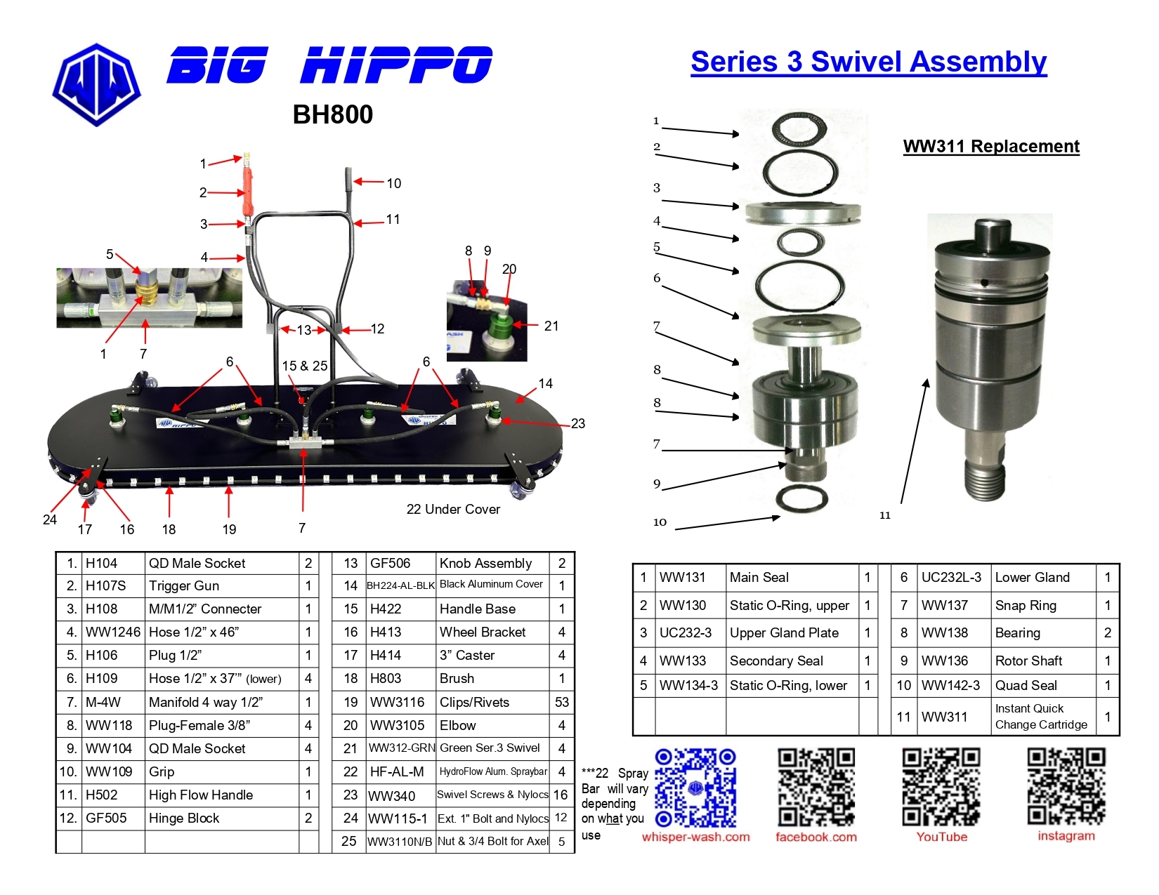 Quad Swivel Power System: Four signature Whisper Wash swivels with twin self-lubricating thrust bearings for maximum rotational output.